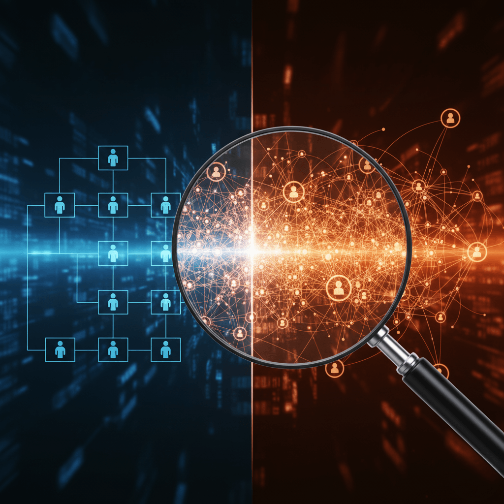 Every organization runs on two structures at once. The formal hierarchy shows titles, roles, locations, and other data you might store in your HRIS. The informal structure shows the everyday flow of advice, problem solving, influence, and trust. Most of us can feel that second network in meetings and chats, but it rarely has a label or a system of record. Organizational network analysis (ONA) measures the real collaboration patterns across teams, revealing influence pathways that org charts miss [5].