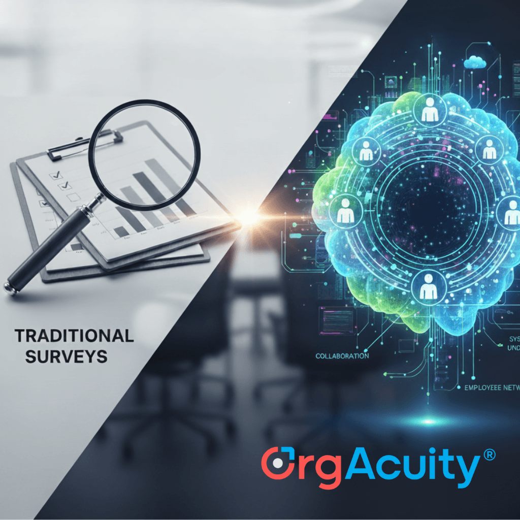 This is where relationships come in and where OrgAcuity focuses. We are not tracking who eats lunch together. We are mapping the living network: influence, trust, mentorship, knowledge hubs, and the communities where change either spreads or stalls.